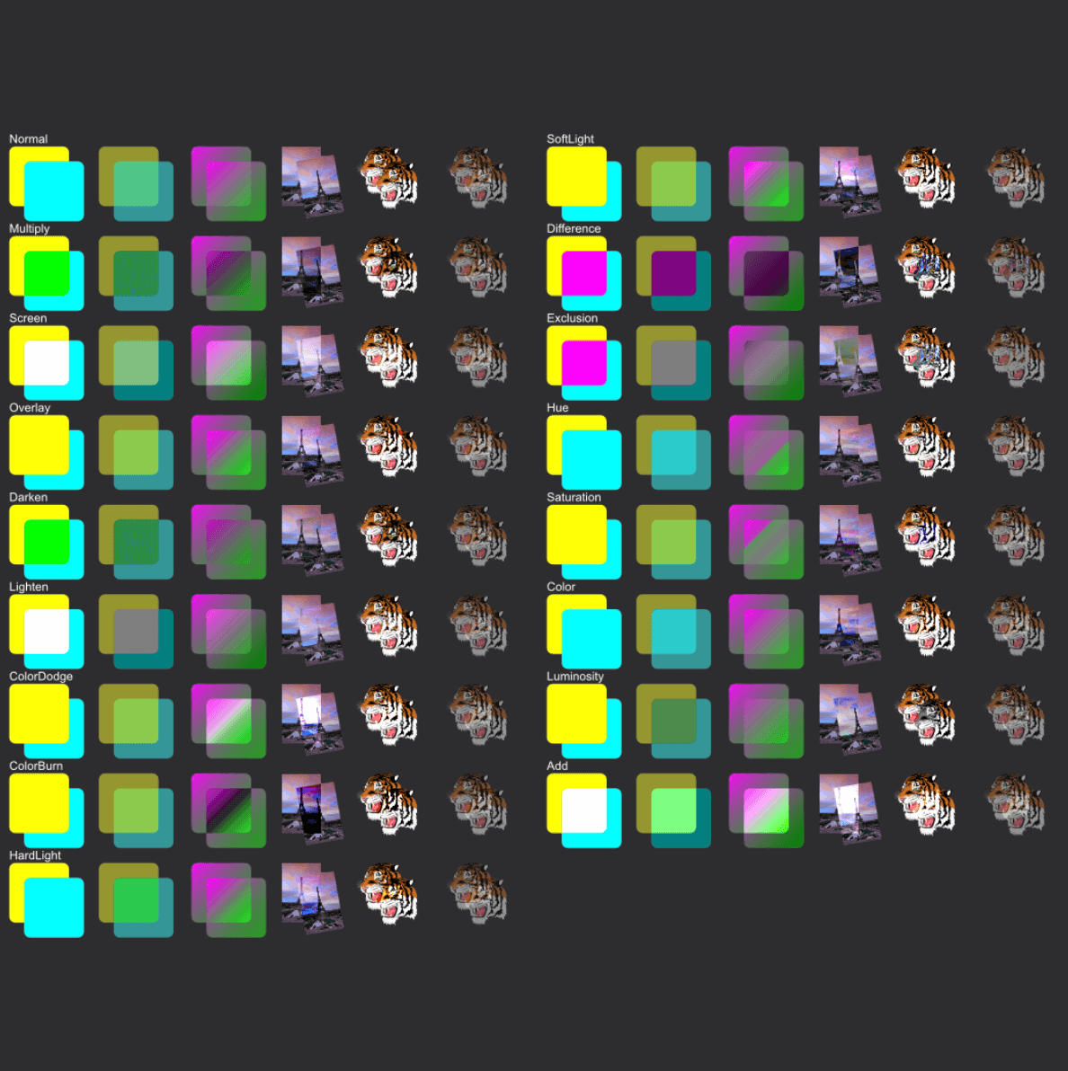 AdvancedDemonstrate all blend modes with various paint types